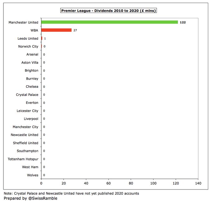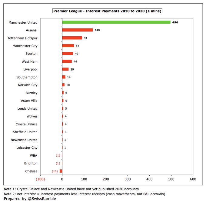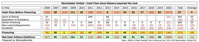 Os torcedores estarão dolorosamente cientes de que seu clube pagou grandes quantias pelo privilégio de ter os Glazers como proprietários. Desde a compra alavancada, eles gastaram £ 1,1 bilhão em financiamento: £ 704 milhões de juros, £ 244 milhões de pagamentos de dívidas e £ 125 milhões de dividendos. Em média, £ 42 milhões nos últimos 5 anos.