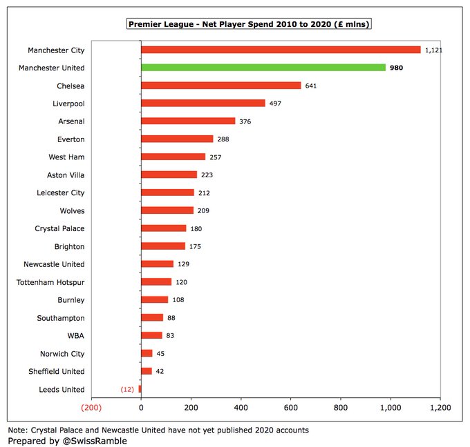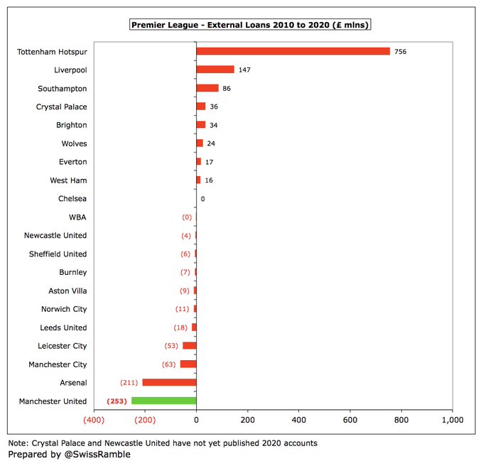 A dura realidade é que depois de toda a engenharia financeira dos Glazers, o United ainda tem uma dívida de £ 526 milhões, que é a segunda maior da Premier League, apenas “superada” pelo Tottenham (£ 831m). Portanto, o esgotamento dos recursos do clube continuará em um futuro previsível.