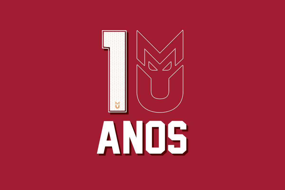 A parte superior é composta por um ‘M’, enquanto que a inferior por um ‘U’, a intenção era formar um diabo com as letras que iniciam o nome de um dos maiores clubes do Mundo, assim poderíamos seguir utilizando o ‘devil’, porém com algo que fosse nosso e nos permitissem o uso do logo com qualquer cor, tamanho e formato desejado .