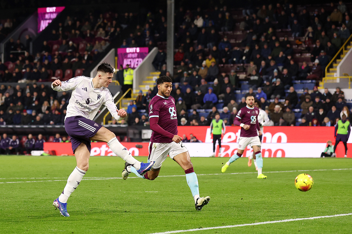 Felizmente, Benjamin Sesko estava em noite de artilheiro. Aos 60 minutos, Dorgu tabela com Ugarte e em seguida cruza para Sesko, que com um simples toque na bola tira qualquer chance de Dúbravka alcançá-la, assim fazendo seu segundo gol no confronto contra os Clarets, virando a partida para os Red Devils. Na sequência, Bruno Fernandes e Heaven foram substituídos para as entradas de Mount e Yoro.