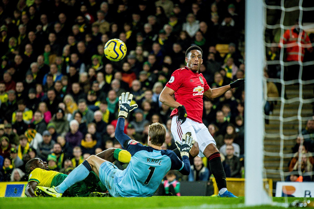 Vindo de vitória magra pela Europa League, o Manchester United foi enfrentar o Norwich fora de casa, com o intuito de vencer e sair da zona intermediária na classificação da Premier League. Um detalhe importante é que as duas equipes chegaram para partida sem terem vencido os últimos quatros jogos pelo campeonato nacional. Com muitas trocas de passes no início da partida, as equipes demoraram para oferecer algum lance de perigo para os goleiros. Os canários tiveram uma boa oportunidade aos 4 minutos, Aarons com muita velocidade avançou pela direita e deu passe rasteiro para a entrada da área, mas o Cantwell chutou para muito longe do gol.