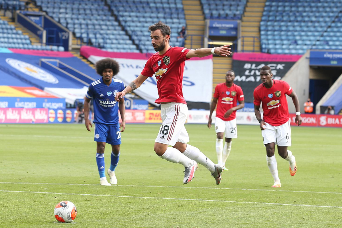 A partida seguia equilibrada, até que em um erro de passe do Leicester, o Martial ficou com a bola e avançou, entrou na área e foi derrubado pelo Morgan e pelo Evans, o árbitro marcou pênalti aos 68 minutos e o VAR confirmou o lance. Bruno Fernandes cobrou no lado direito do Schmeichel, que pulou para o lado contrário, para abrir o placar. O resultado obrigou os foxes a pressionarem mais, que quase empataram aos 74 minutos, Gray cruzou pela direita, Barnes recebeu, girou em cima da marcação e chutou com perigo, mas o De Gea fez boa defesa.