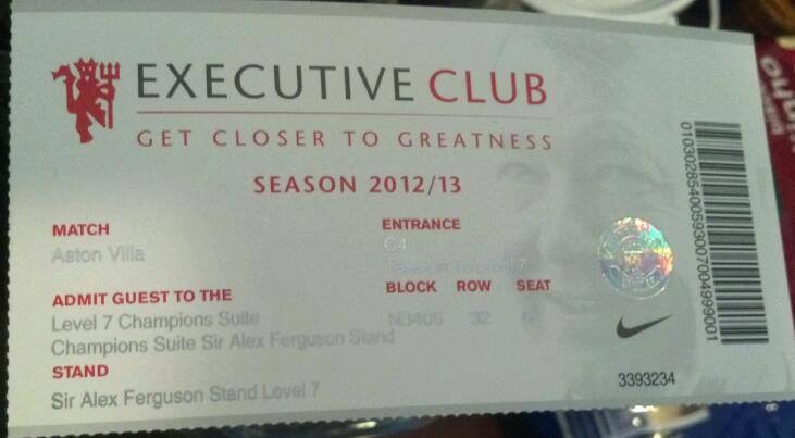 Nunca! Nem imaginava que eu também iria ver o Hat-trick e golaço de Robin van Persie com um passe magnífico de Rooney. Escolhi essa partida ao acaso já que era contra o Aston Villa um time que não estava fazendo boa campanha e queria que o jogo fosse em Old Trafford por motivos óbvios, essa partida acabou sendo a mais viável, tive um grande problema em relação a esse jogo pois a federação inglesa adiou a partida que ocorreria em um sábado e acabou sendo realizada na segunda-feira, resultado: paguei uma multa na agência de viagem, mas por fim valeu muito a pena.