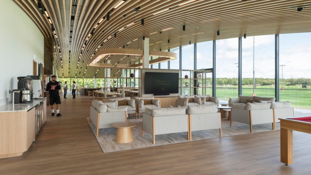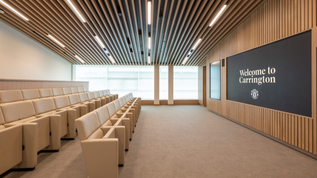 “A reforma do prédio da equipe masculina segue a construção de um novo prédio de £ 10 milhões para a equipe principal feminina e a Academia masculina em 2024, elevando o investimento total em Carrington para mais de £ 60 milhões nos últimos três anos e unificando todas as equipes do clube em um único campus modernizado.”